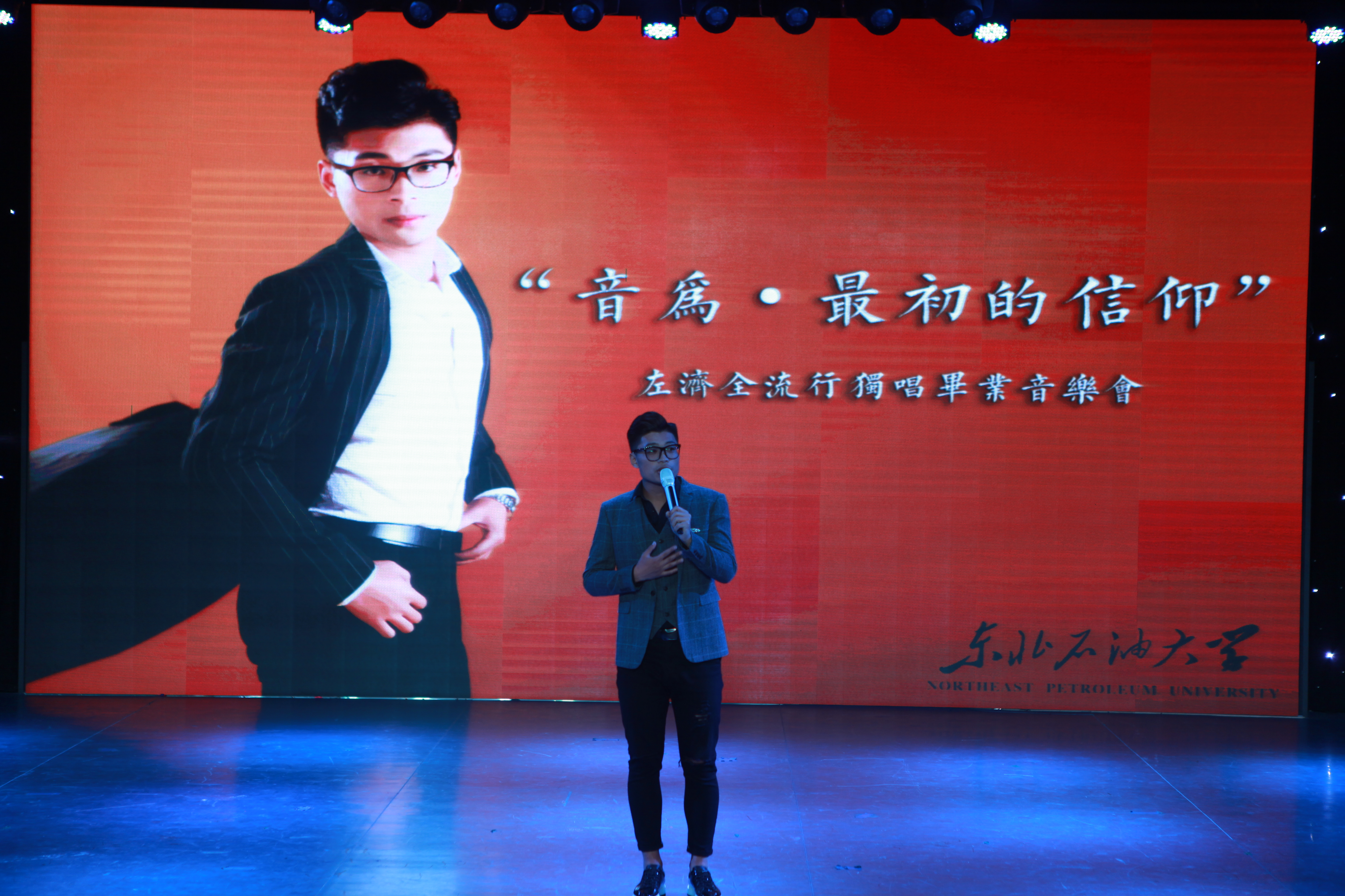 本场音乐会共由13首经典曲目组成,分为上半场、中场和下半场,左济全用深情的演唱传递了对母校和恩师的感激。一段感人至深的VCR拉开了整场音乐会的序幕,从3003新葡官方网站老校区的一草一木开始,左济全叙述了自己的四年求学时光,收获、辛勤、汗水、奋斗浇灌了今日的成长。上半场《青春日记》、《悟空》等耳熟能详的优美旋律将全场带回到年少的青葱岁月,感人肺腑;悠扬婉转的《阿楚姑娘》极具地方特色,韵味十足;欢快的《FEELING GOOD》华丽的转音技巧,充分展现了左济全精湛的演唱功底。上半场最后一首作品《刚好遇见你》熟悉的旋律,掀起了本场音乐会的第一个高潮,全场互动热烈,左济全倾心的演唱赢来了在场观众的热烈掌声。音乐会邀请同学陈星、胡本伸等任助演嘉宾充分展示了有志青年的朝气蓬勃及对美好大学时光的留恋。下半场以感恩为主题,《烛光里的妈妈》、《天空之城》、《最爱》等作品感人肺腑,情真意切,让全场潸然泪下。时光荏苒,岁月如歌,一曲《当我想你的时候》深情的演唱将本场音乐会再次推向了高潮,使在座的每一位都热泪盈眶,真情打动了所有的听众,为本场音乐会画上了完美的句号。