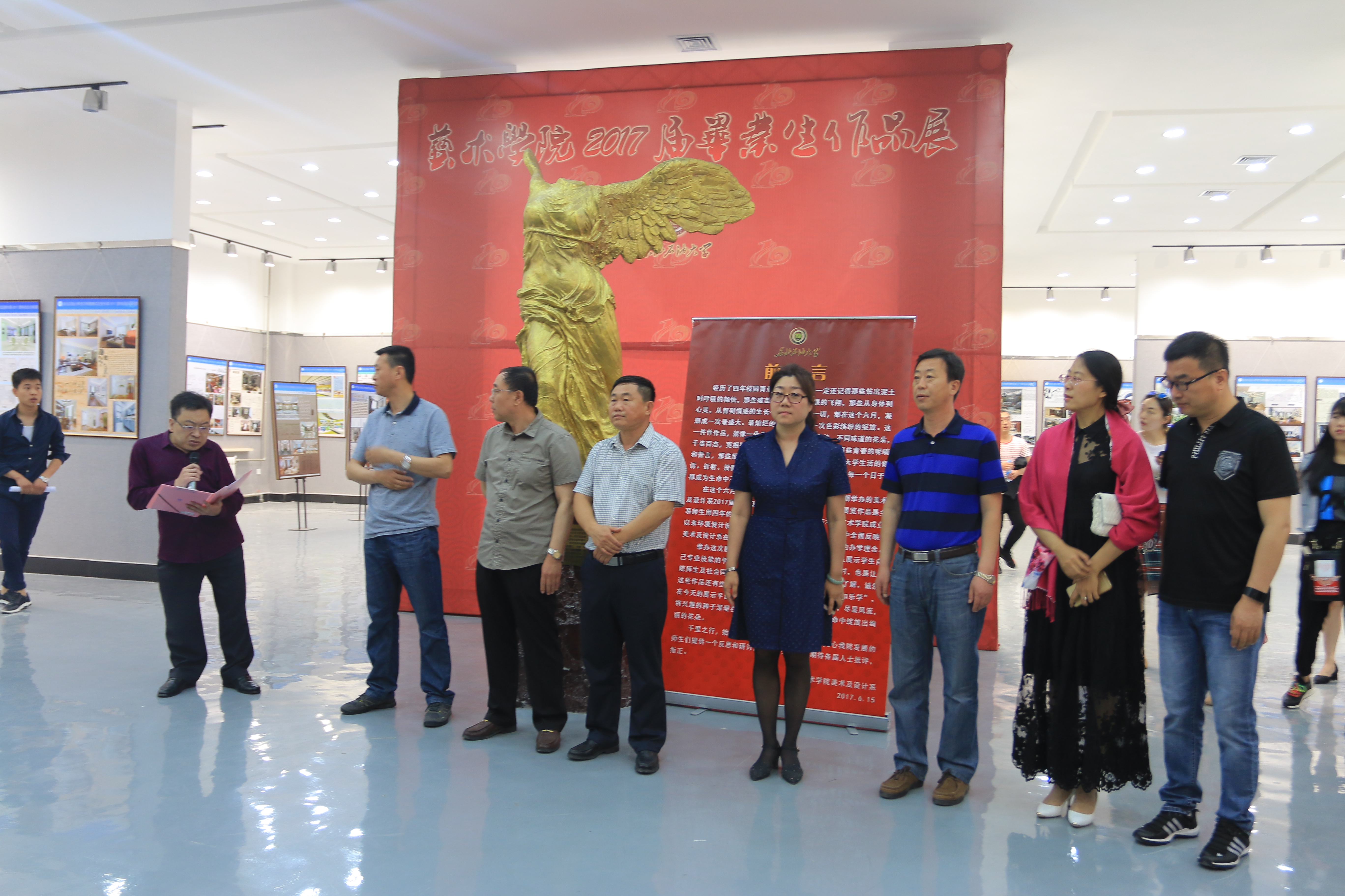 6月15日上午美术与设计系在3003新葡官方网站胜利女神厅举办了毕业设计作品展。此次展出了2017届毕业生100余幅作品,此次展出的设计作品技术功底好、专业基础强、创意新颖、设计内容紧跟时代步伐和前沿,展现了毕业生的学习成果和指导教师的专业水平,是近几年中毕业设计作品水平较高的一次。